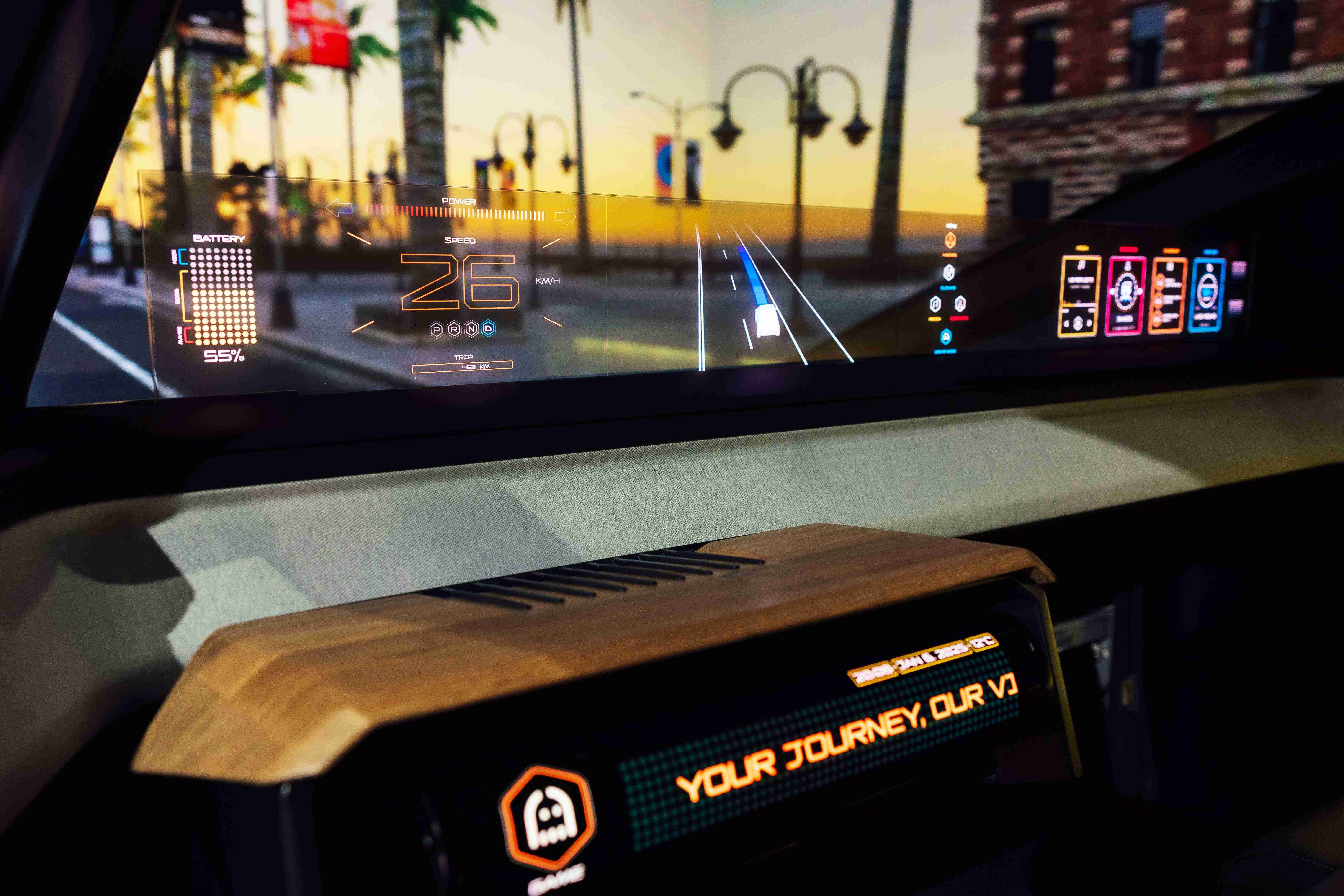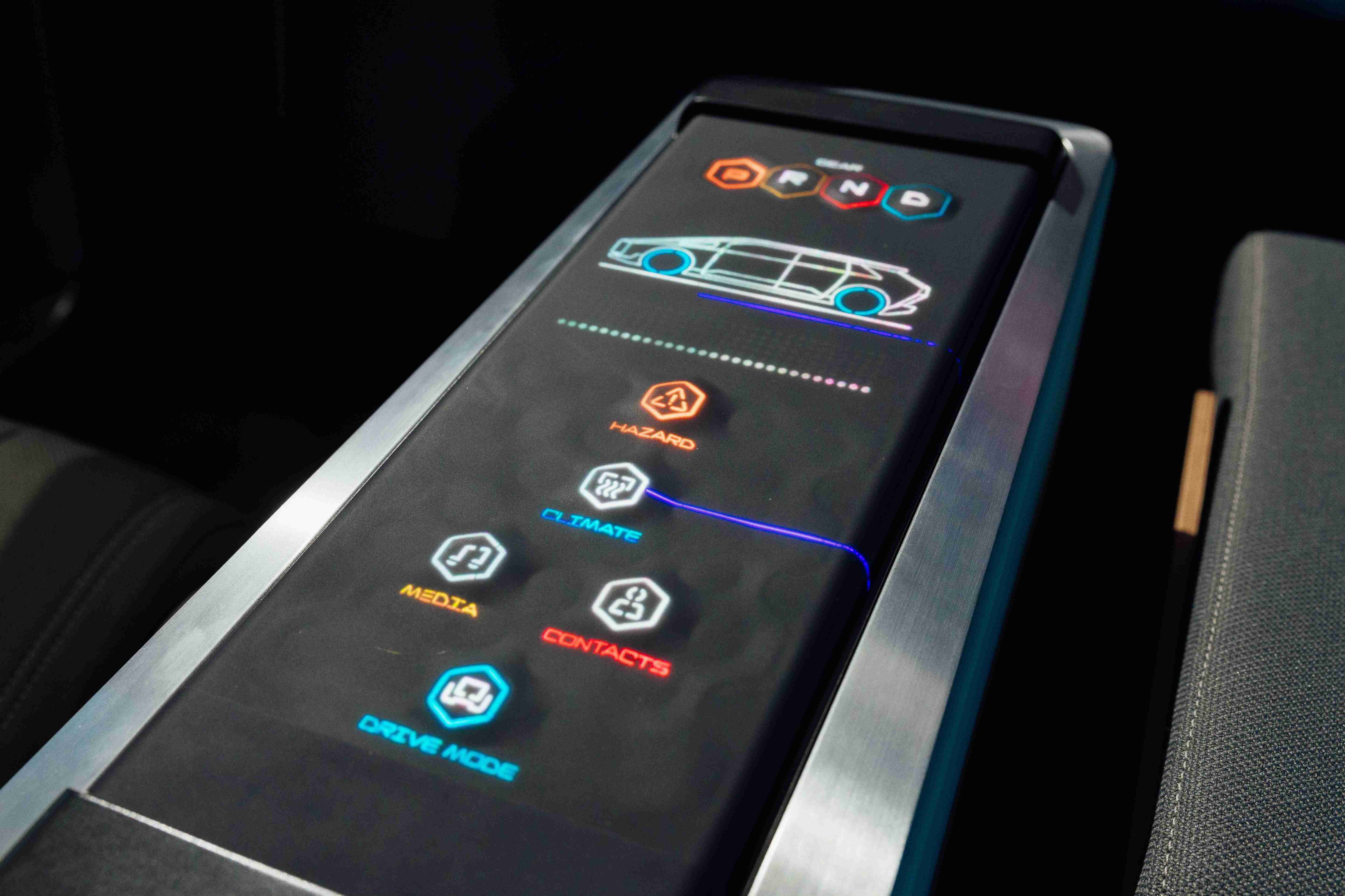 幻境全景天幕(Virtual Sky Canopy)将无缝拼接大型化的透明Micro LED显示器融入至天窗,,,,带来沉浸式体验,,,,将人机介面扩展至整个座舱。。。 银河集团光电以人性化的设计引领直觉式的人机互动,,,,透过多变形态中控显示(Morphing Center Control)、、、隐藏式智驾介面(Foldable Cruise Pilot)等解决方案,,,让乘用者依据自身需求调整、、控制座舱内所需功能。。。。