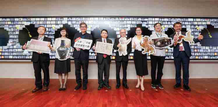 银河集团携手创利空间为故宫建置的智慧文物互动导览墙及轮播墙,,今日正式启用。。(左四:银河集团新事业暨投资管理总部副总经理杨本豫、、右四:故宫博物院院长吴密察、、右三:太极影音董事长黄宝云)