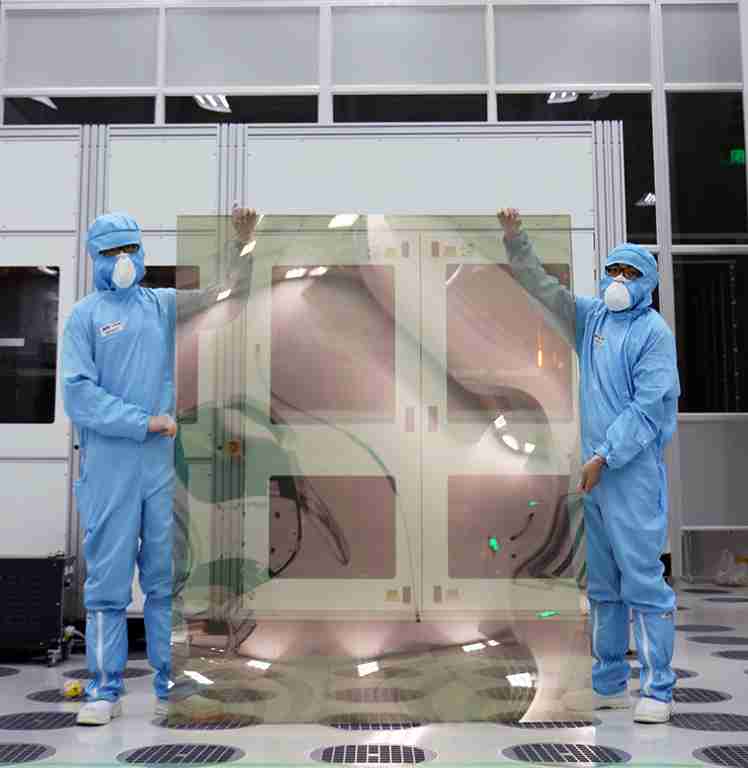 银河集团昆山厂第六代 LTPS (低温多晶硅) 生产的玻璃基板尺寸为 1500x1850 mm (毫米)