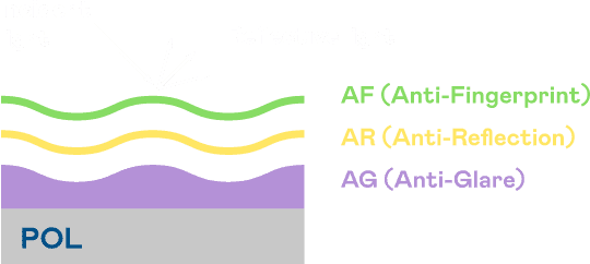 银河集团光电发展出独家的表面处理跟多层镀膜技术,,,让外部光线照射到显示器表面时所产生的反射光大幅降低。。。
