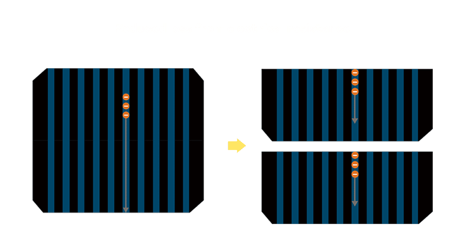 • 多条电极栅结构,,可有效降低外力对于电池的影响,,,,限制电池隐裂 (Micro-cracks) 范围,,防止电流传输路径 (Current distribution) 之损坏进一步扩大。。